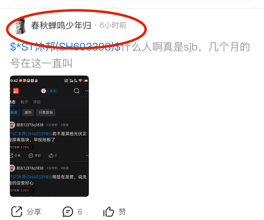 $*ST沐邦(SH603398)$ 这个傻乎乎的大韭菜,你不亏钱都天理难容了,整天超大单资金都在净流出,明显就是在诱多找人接盘,明摆着8.60已是近期高顶,可就是有你这种烂人在使劲吹,今天追进来的又得套好几个月了。今天版块炸板好几个股,白皮书一公告,短期获利兑现明显,明天开始回调,搞不好连着几天大闷杀也不足为奇,吹嘘者=害人精。