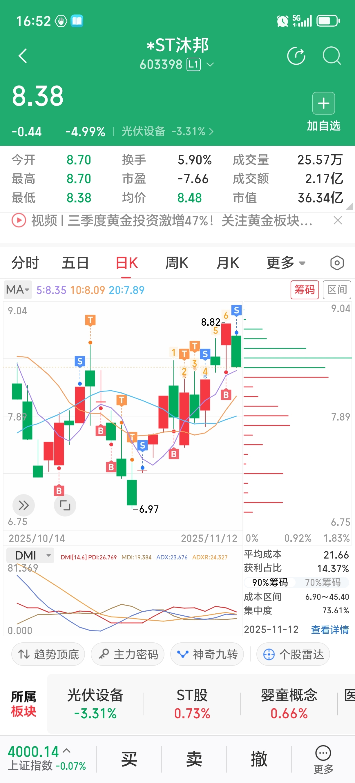 $*ST沐邦(SH603398)$ 不能穿越9块就代表退市,再见了时间不等人,退市要亏完本金的