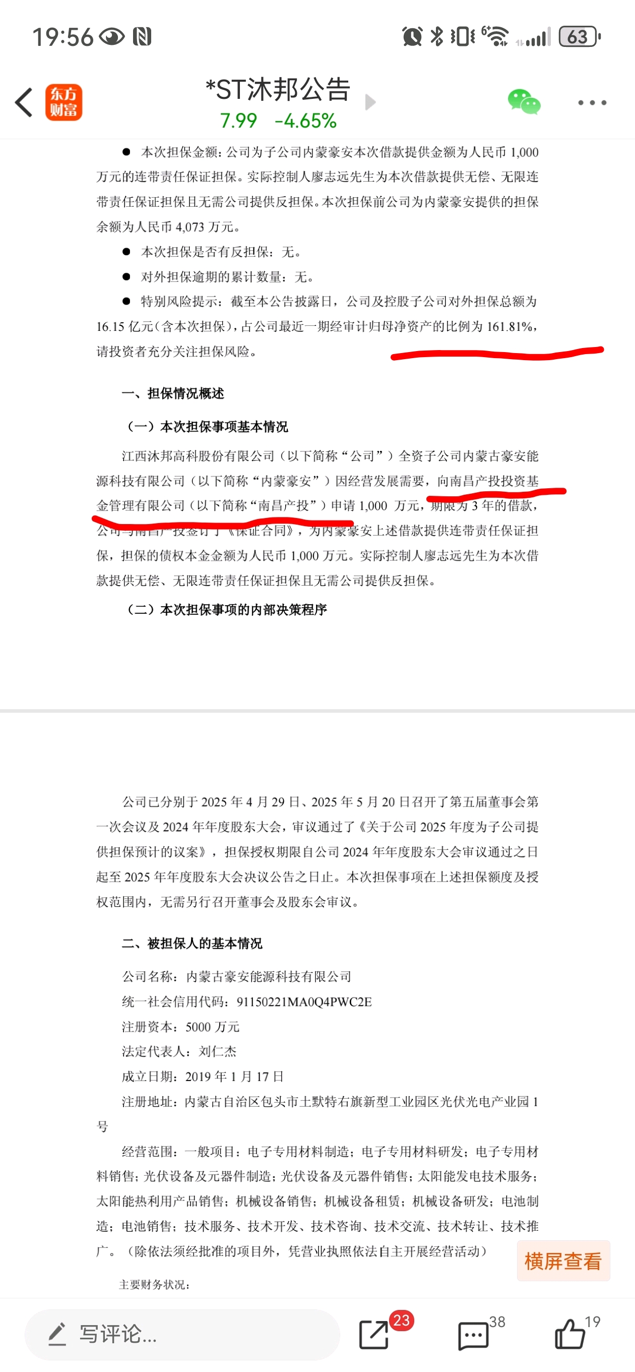 还有一个关键点,就是沐邦担保的金额已经占净资产的161.81%,也就是说这个钱肯