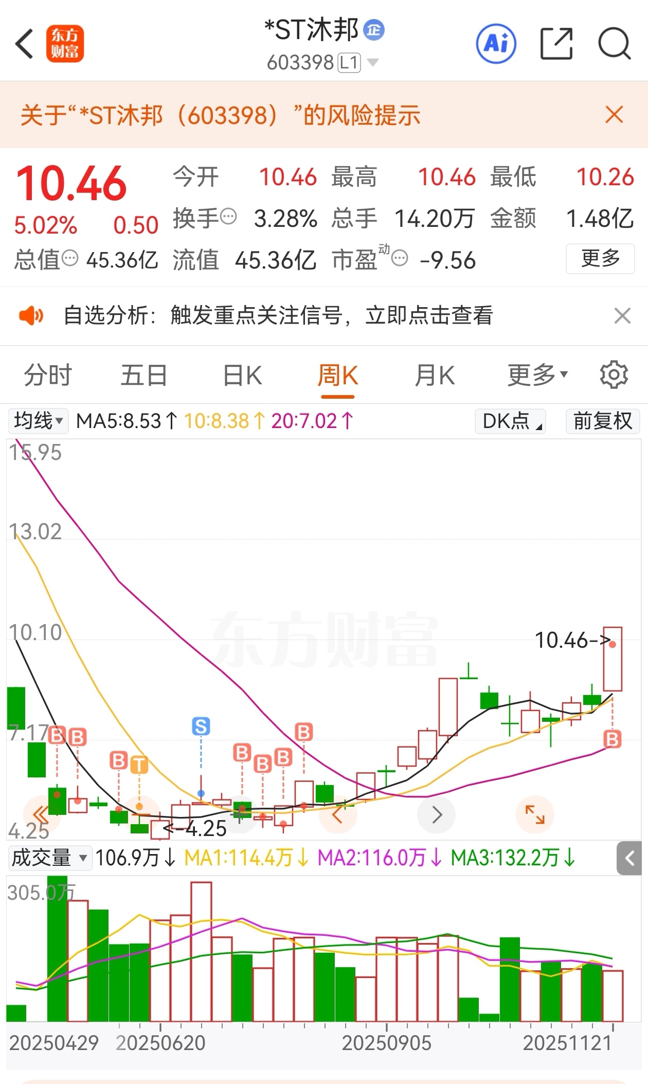 $*ST沐邦(SH603398)$ 是我来时路,感谢那位仁兄