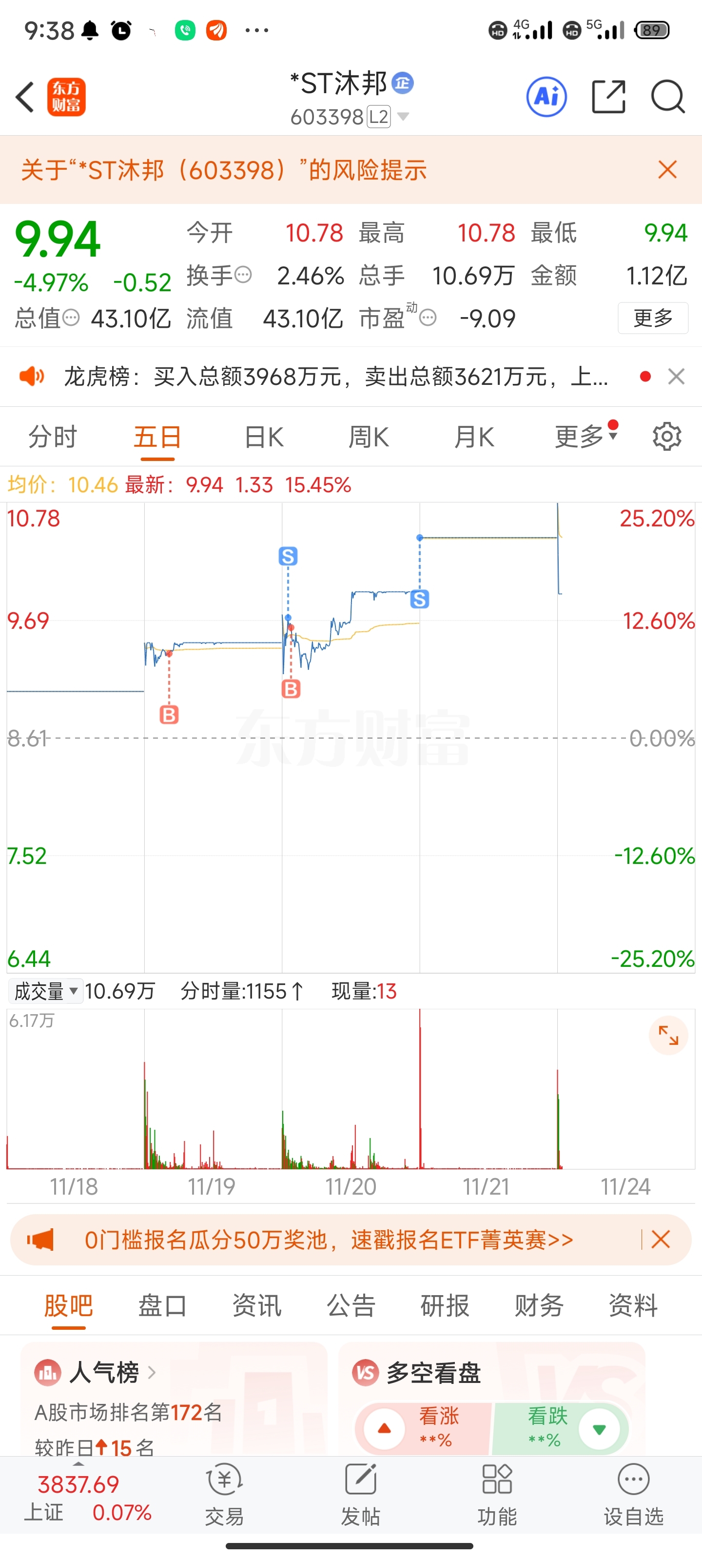 $*ST沐邦(SH603398)$ 本来以为卖飞了,不过也挣了点就想着落袋为安,没想到及时下车了