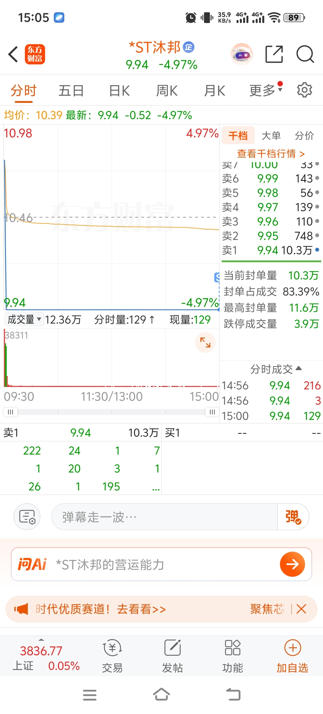 $*ST沐邦(SH603398)$ 走了三成仓位,看明天怎么个事!
