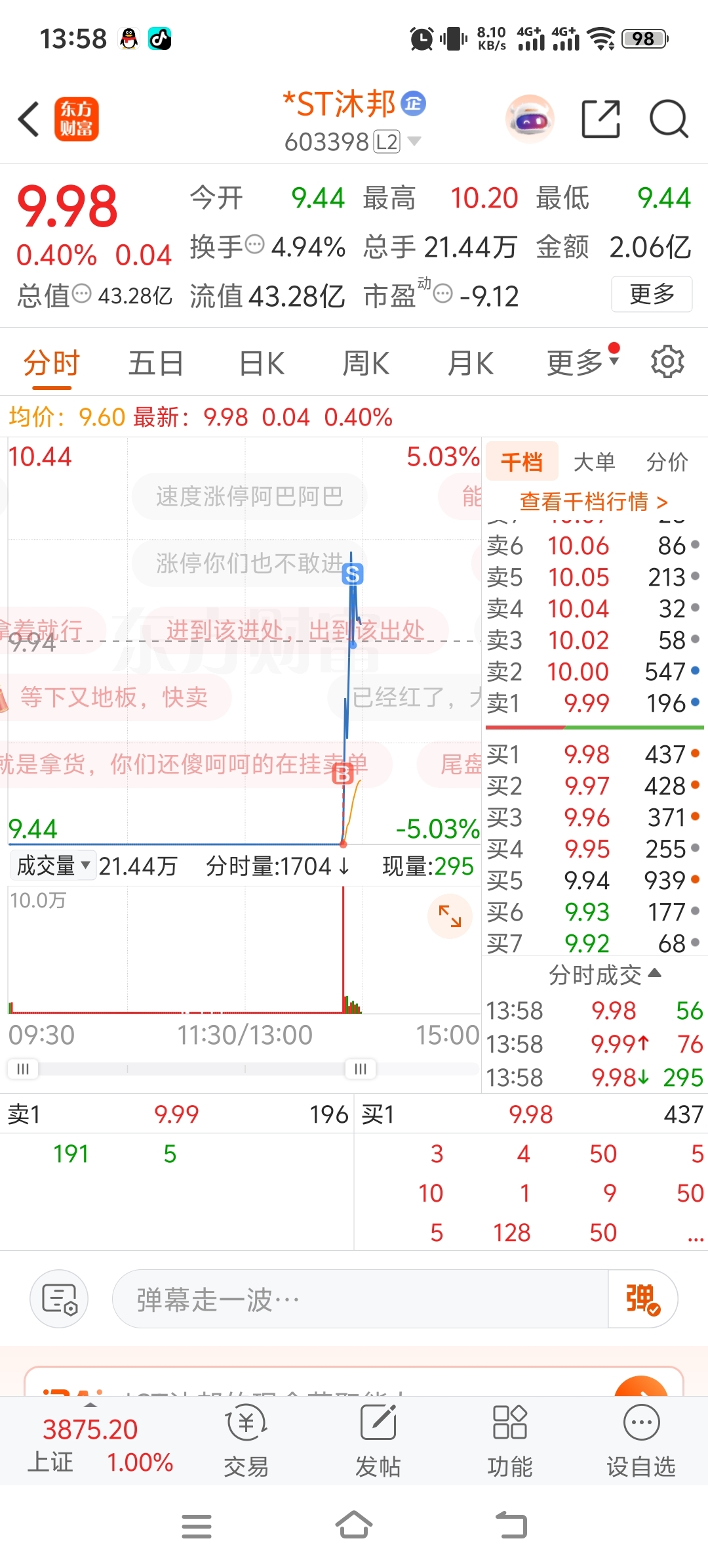 $*ST沐邦(SH603398)$ 兄弟们别怪我,我t了点成本!