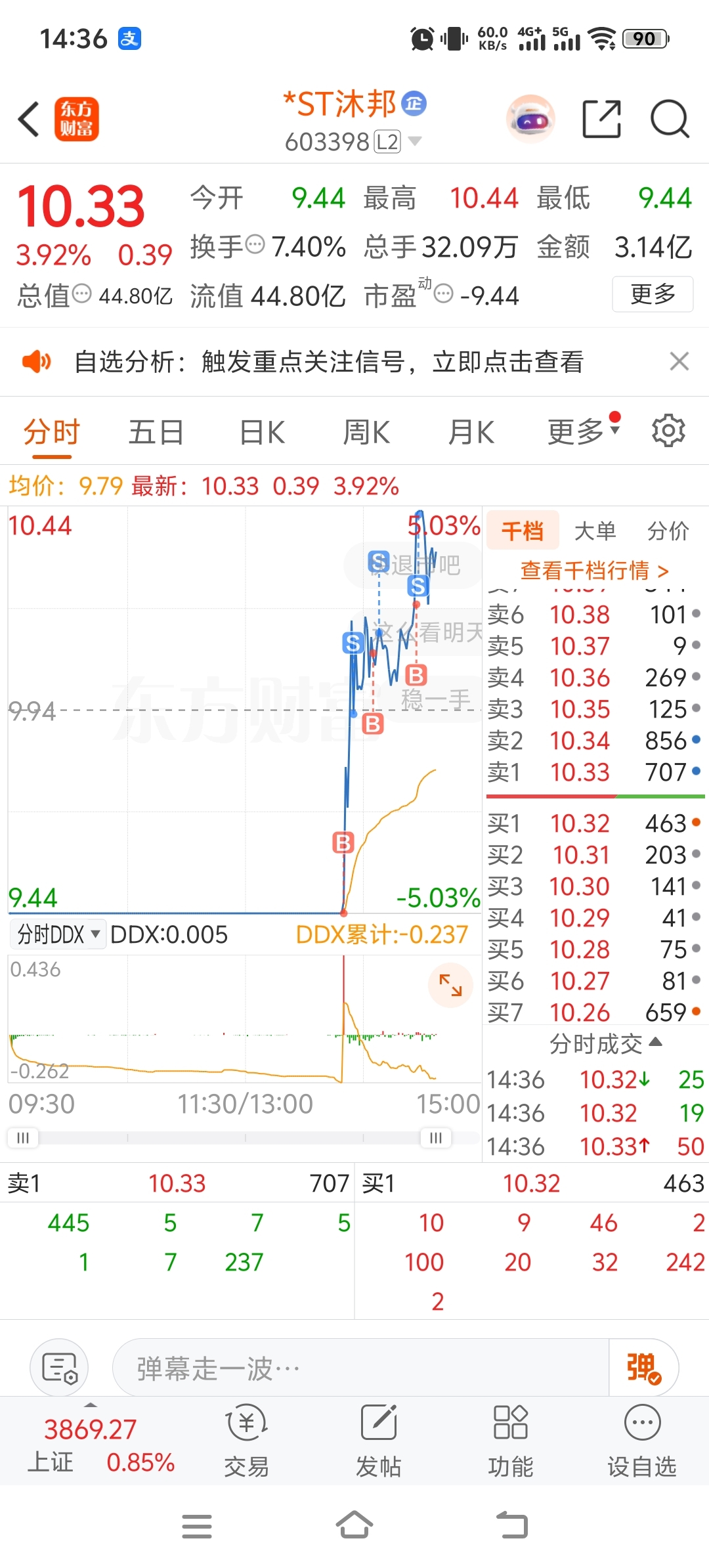 $*ST沐邦(SH603398)$ 七成仓位,感谢,从来没有骂过!