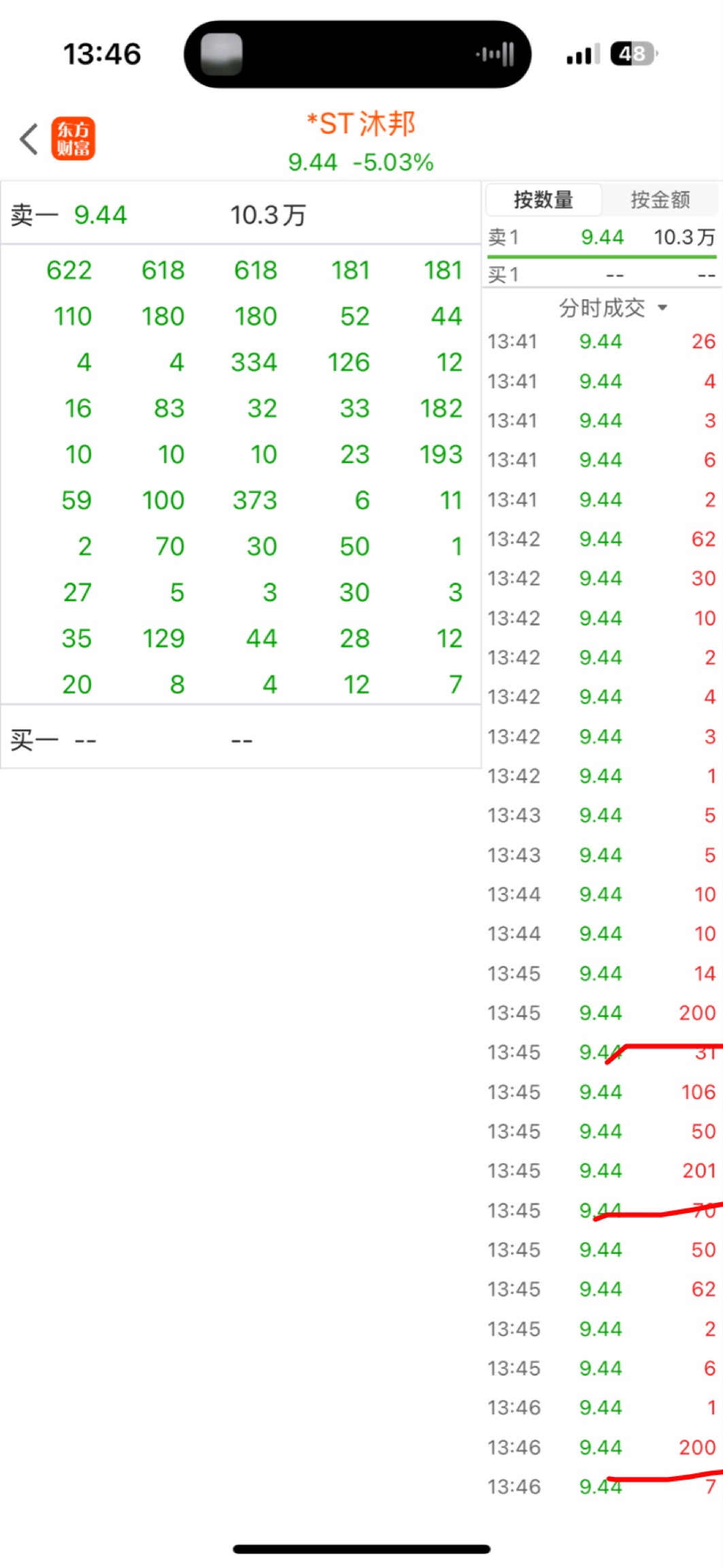$*ST沐邦(SH603398)$  昨晚挂的隔夜单卖,一直盯盘突然发现成交了赶紧地板加仓买回去了,果然大单在偷偷买