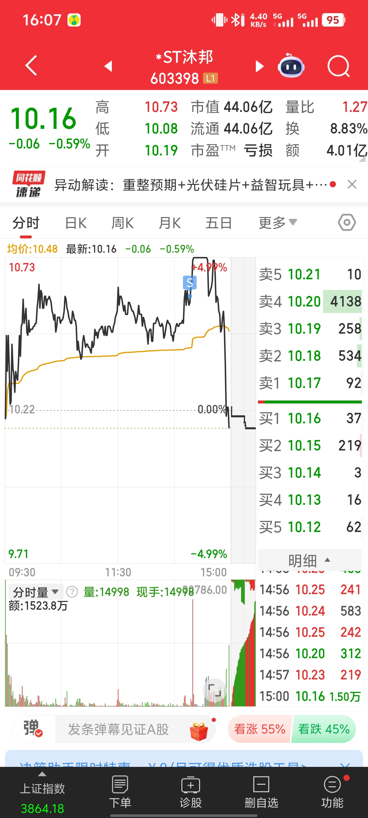 $*ST沐邦(SH603398)$ 明天还能买回来吗