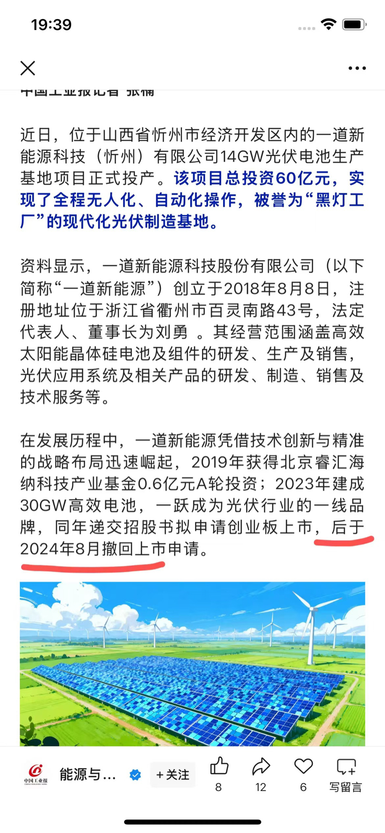 已于去年24年8月,一道新能已主动申请撤销ipo