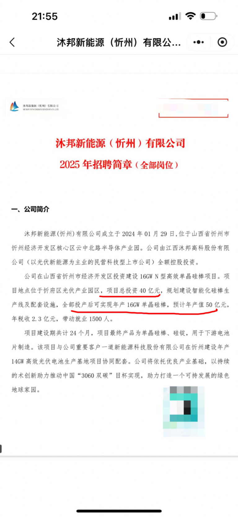山西忻州单晶硅项目,投资40个亿,年产值50亿元