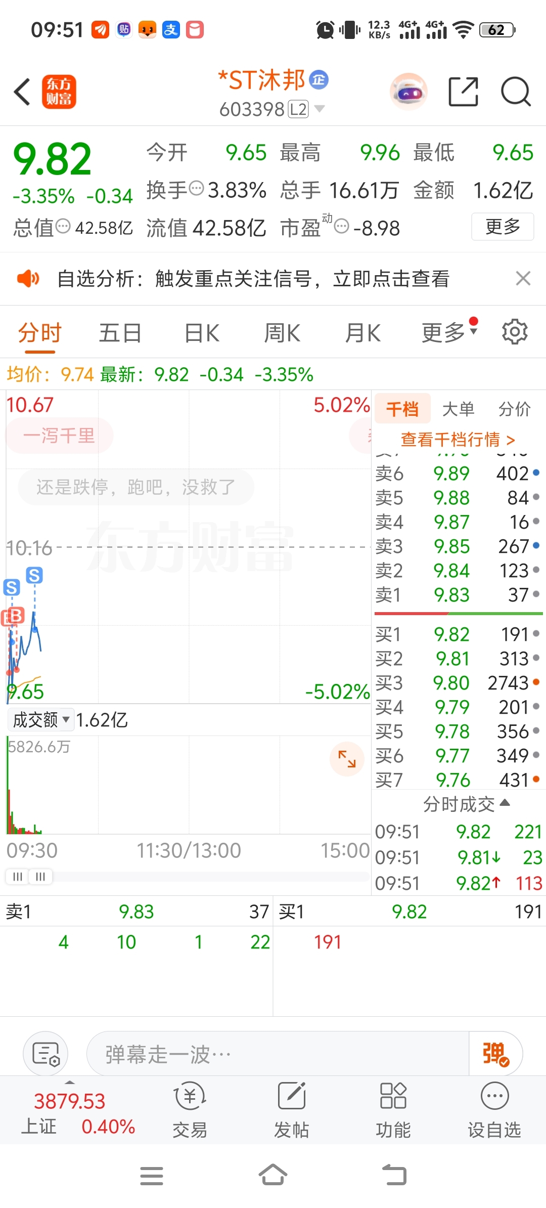 $*ST沐邦(SH603398)$ 跟随做t,将心比心!