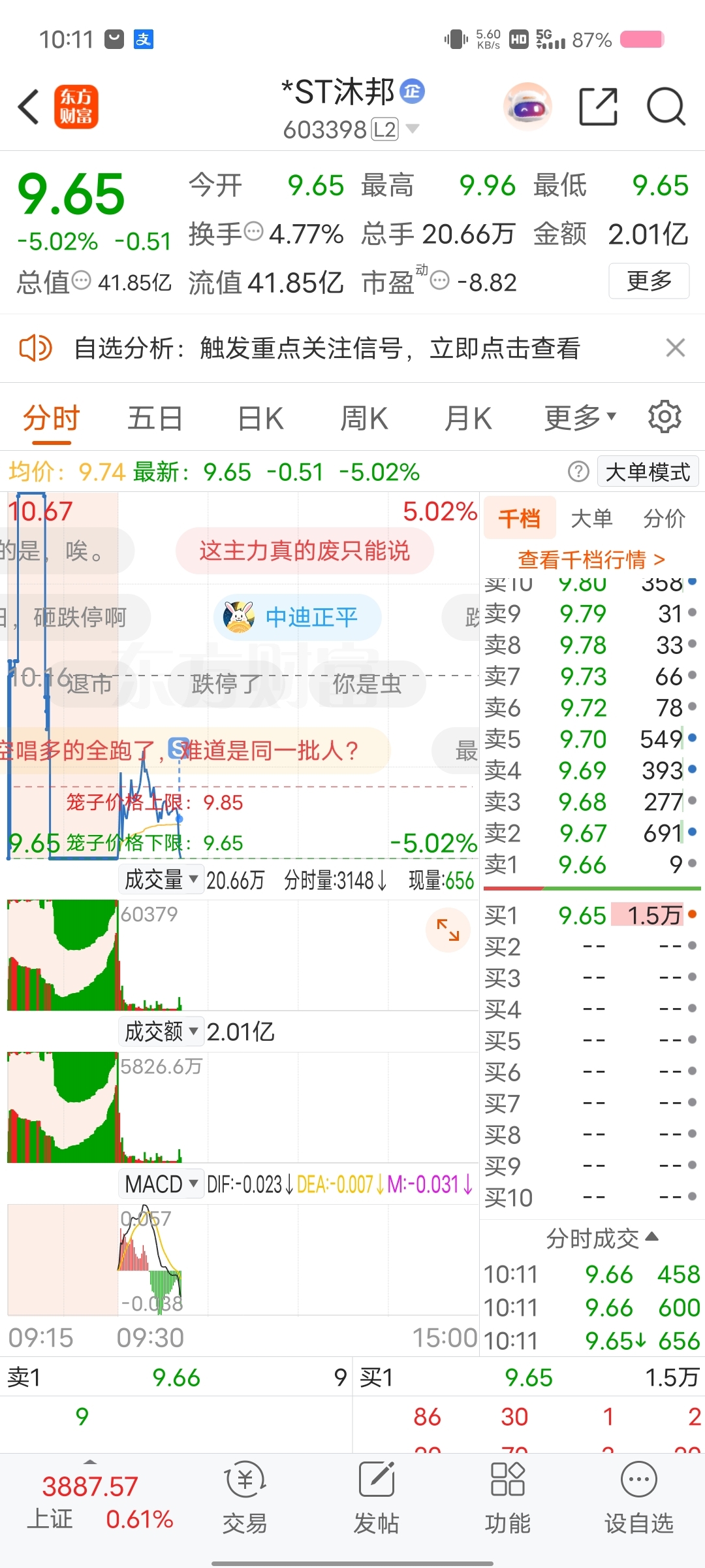 $*ST沐邦(SH603398)$ 不好意思,按了个核按钮