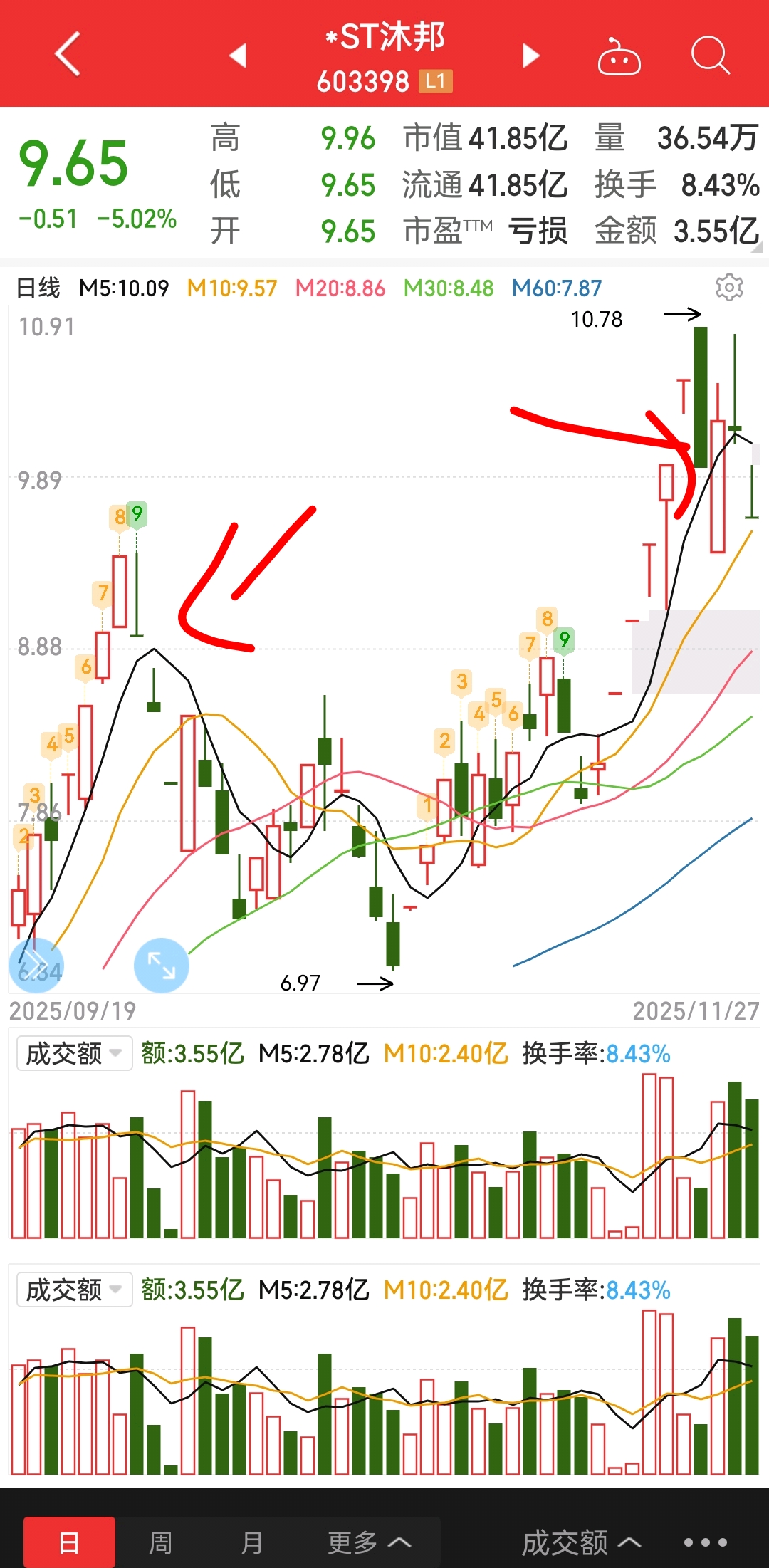 看样子要跌回八块去了!唉