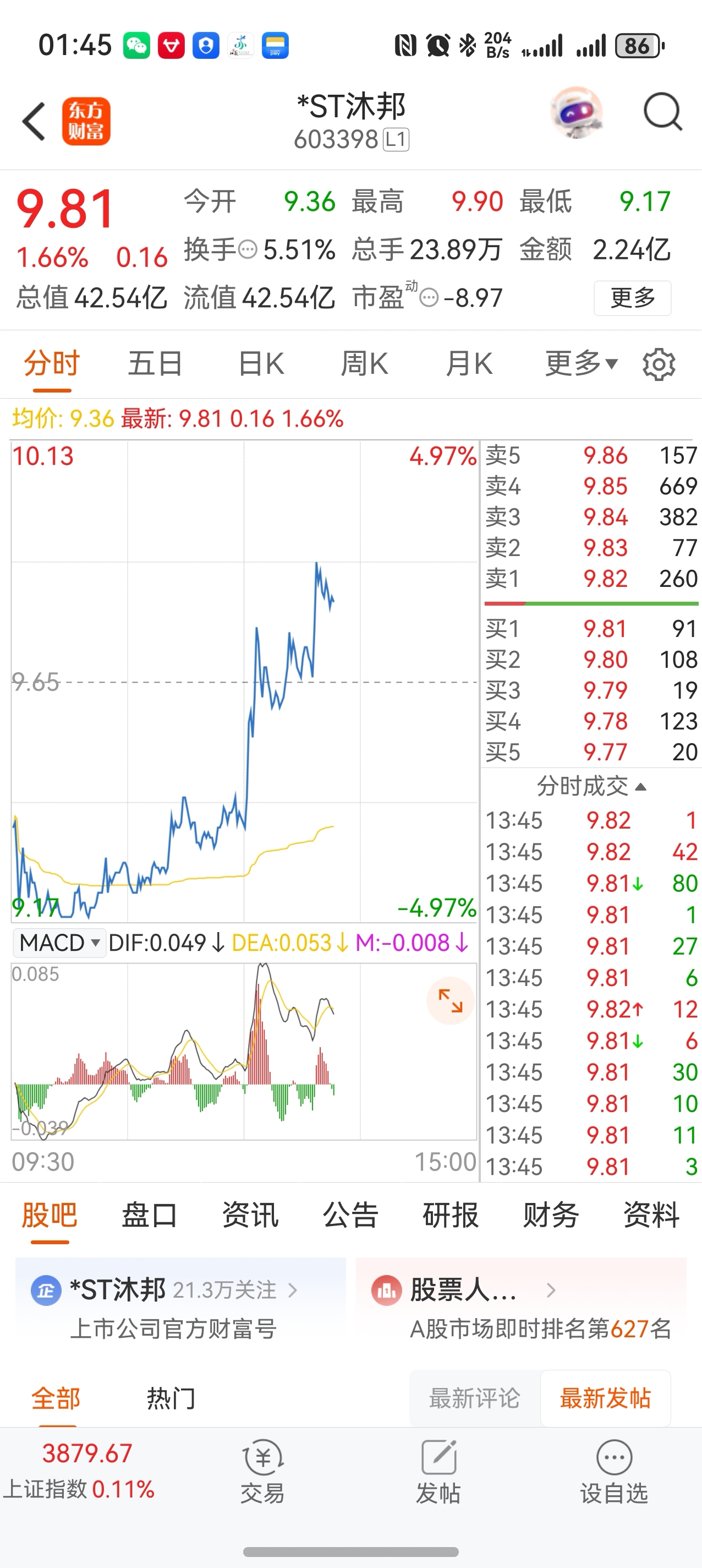 $*ST沐邦(SH603398)$ 今天看来是冲着地天的节奏么?