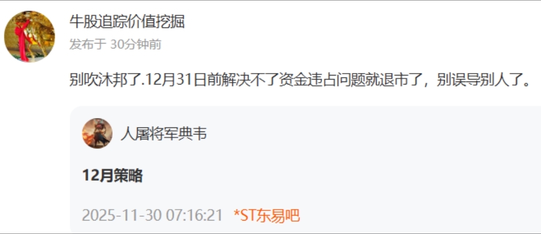 $*ST沐邦(SH603398)$ $*ST万方(SZ000638)$ $*ST正平(SH603843)$