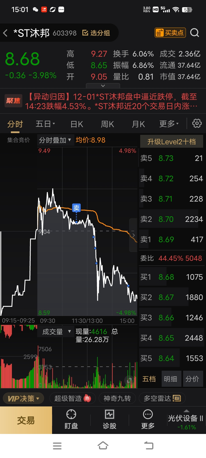 $*ST沐邦(SH603398)$