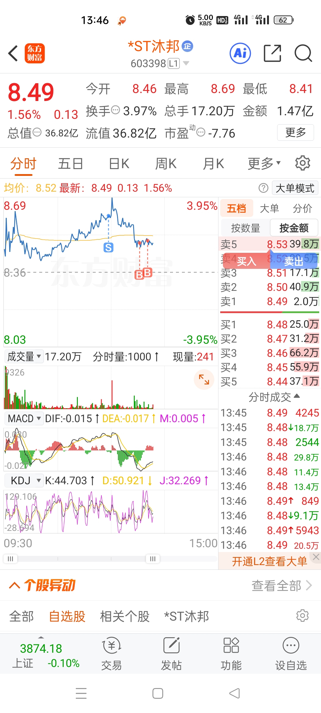 $*ST沐邦(SH603398)$ 随着主力做量化,爱谁谁,波段底部,打满干!