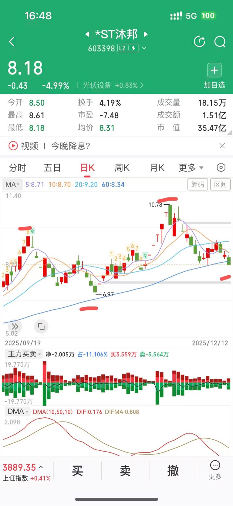 $*ST沐邦(SH603398)$ 沐邦上次的9.44高点是9.29号,10月调整了16个交易日,到10月29出现最低点开始反转,用1个月的时间再次创下新高10.78,时间是11.24号,按照这个节奏,这波调整最低点基本就是下周一,时间节点上会随时反转,叠加即将结案以及招募,沐邦的下个高点极大概率会出现在12月末,兄弟们,坚持住,黎明前的黑暗,曙光即将出现。