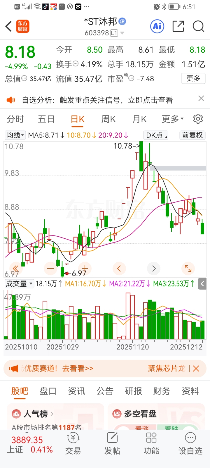 $*ST沐邦(SH603398)$ 别人恐惧我贪婪,下跌空间有限,上涨无限。重整投资人即将露面,到底是哪位大神?截至2025年12月,ST沐邦(603398)潜在重整方主要分三类: