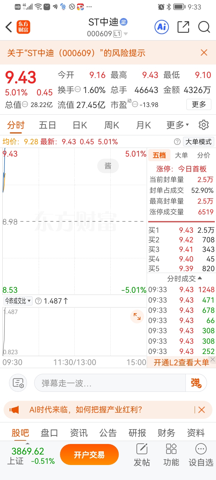 sT股涨停,直线拉红,sT板块有止稳迹象。