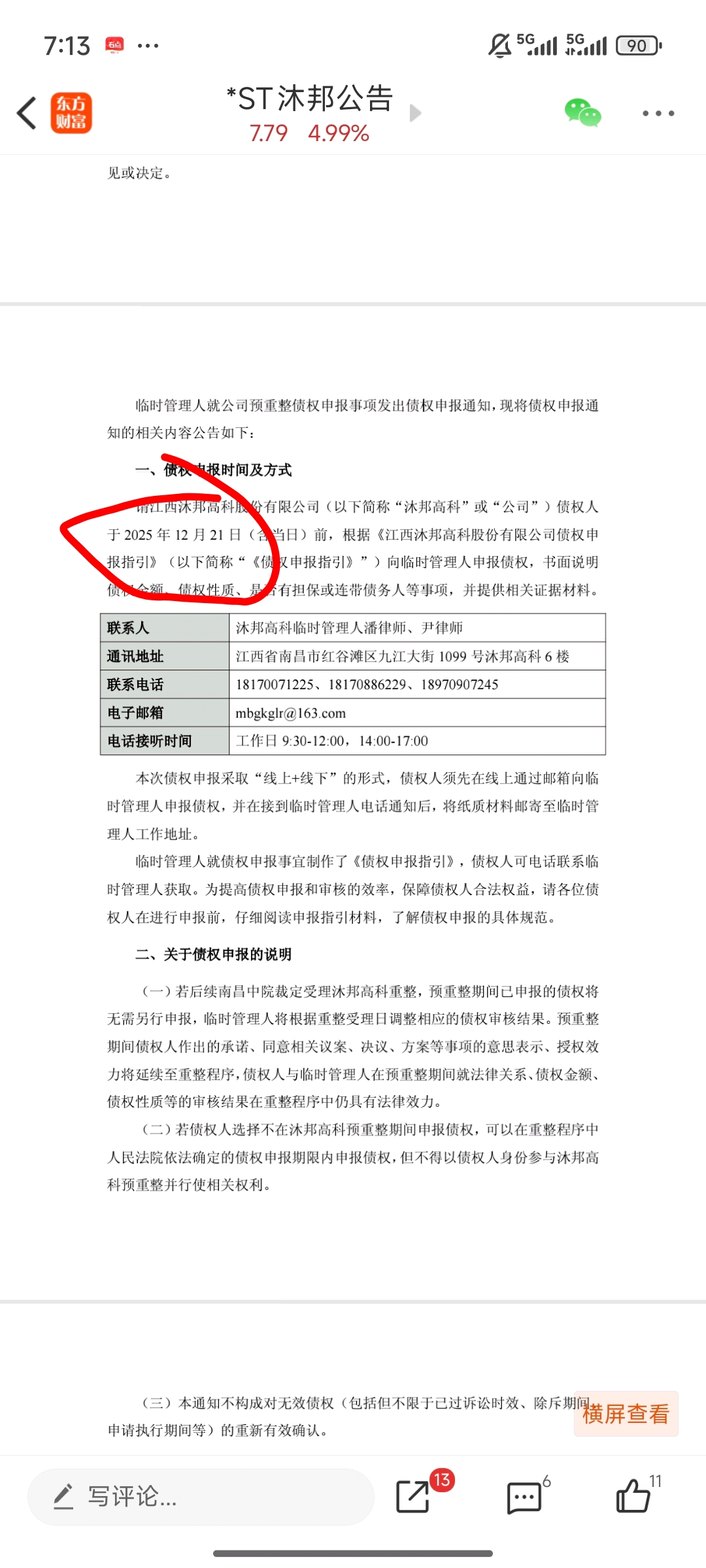 今天这个公告再不发,债权就确认不上了重整就和他没关系了,今天是最后一天了,我甚至