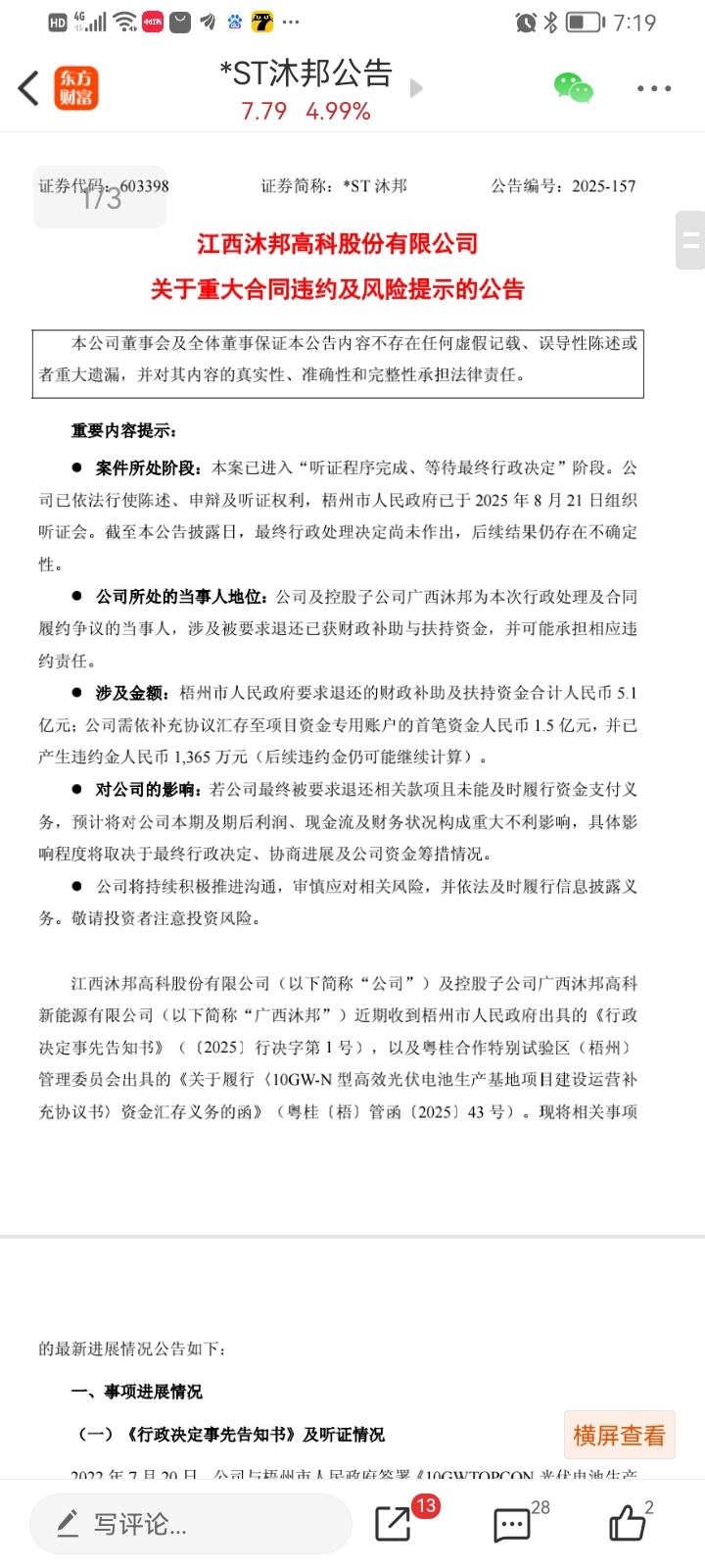 $*ST沐邦(SH603398)$ 又踩雷,有点麻烦,难搞喔!周一可能又情绪化踩踏了,今天才进点$*ST正平(SH603843)$ 底仓,看来又被沐子拖累了,原本想沐邦下周上涨遂渐撤回$*ST聆达(SZ300125)$ ,看来又要当一段时间股东了。