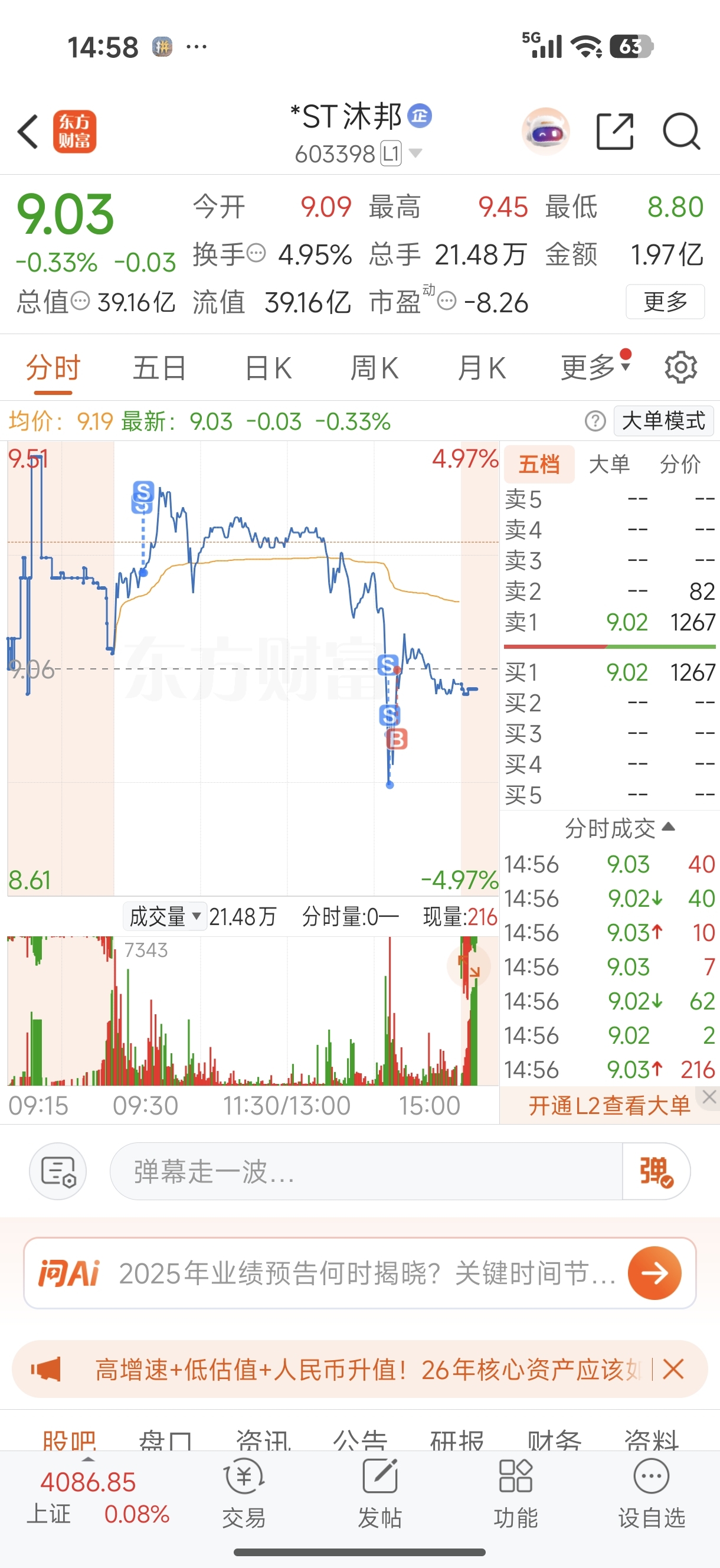 $*ST沐邦(SH603398)$ 休息有空盯盘了马上一顿操作猛如虎……但凡少看一眼都不至于卖在最低点啊,完美做反T