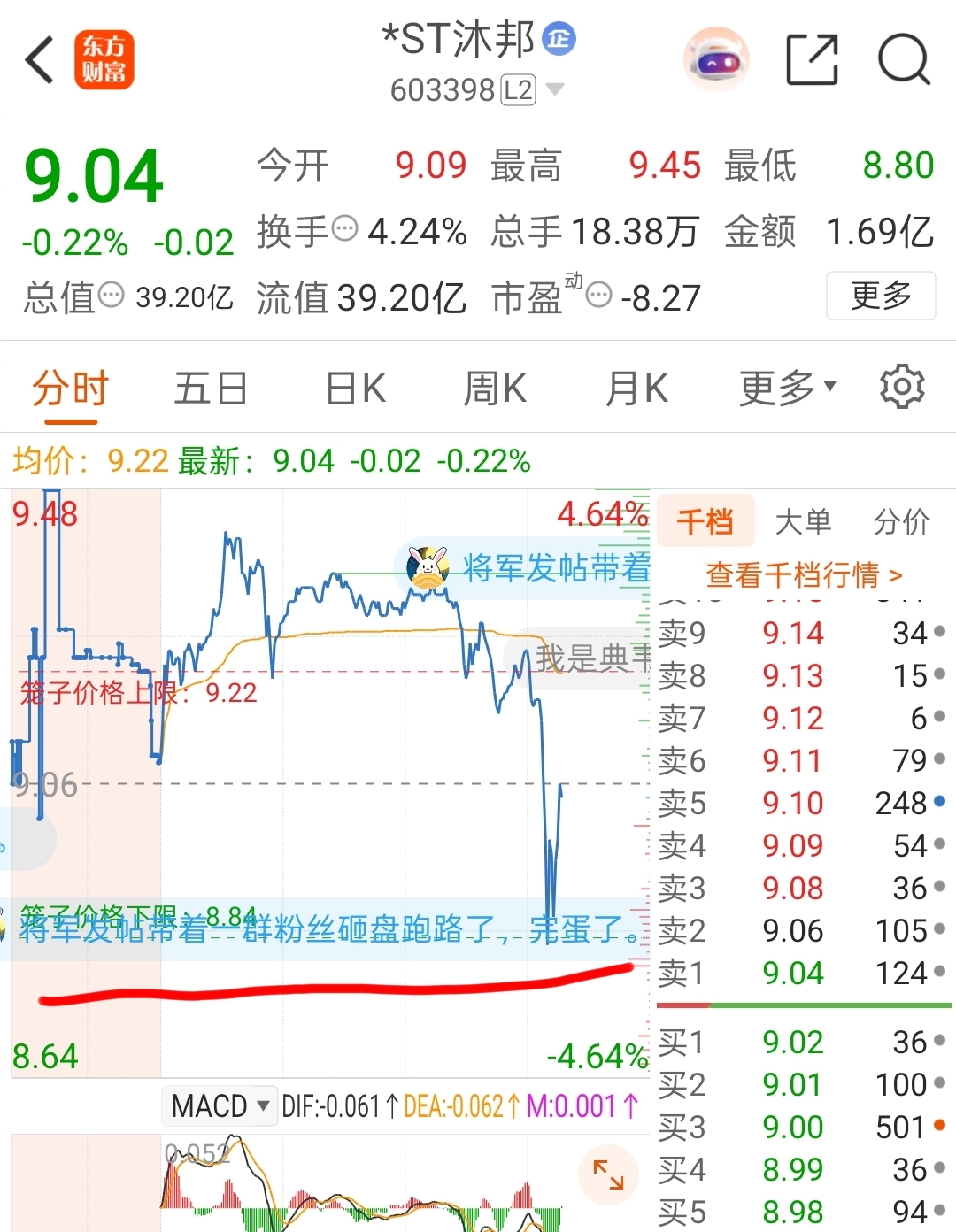 今天有人拿东通的退市风险提示p到沐邦上,发完后直接就砸了,用尽了手段,只能说时间很紧迫了。这时候更要沉得住气,拿住了!