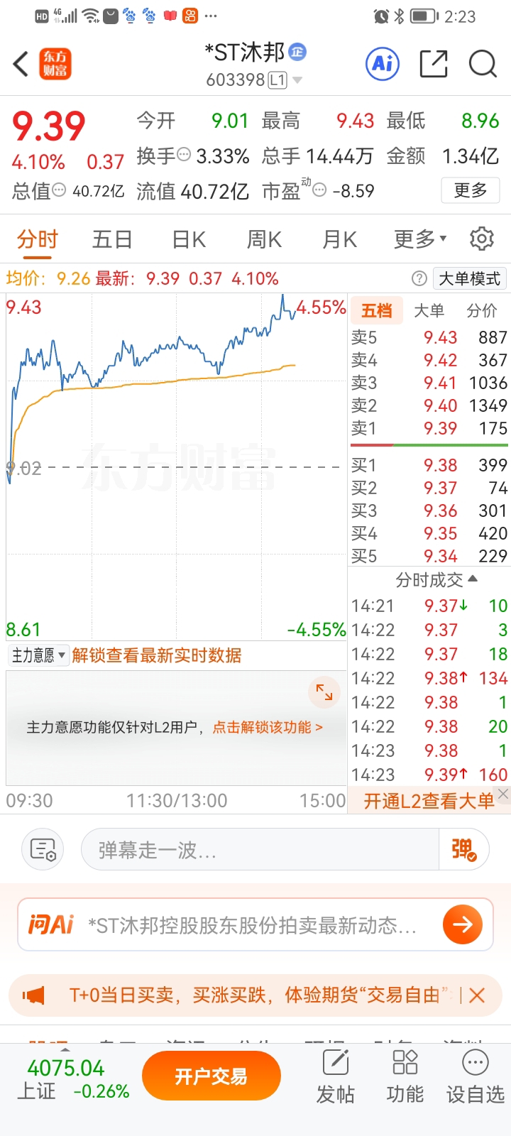 $*ST沐邦(SH603398)$ 今天放那么多大单压着,事出反常必有妖,加上前二天莫明其妙风险提示,好事临近,拿好手中筹码。$*ST正平(SH603843)$ $*ST东易(SZ002713)$