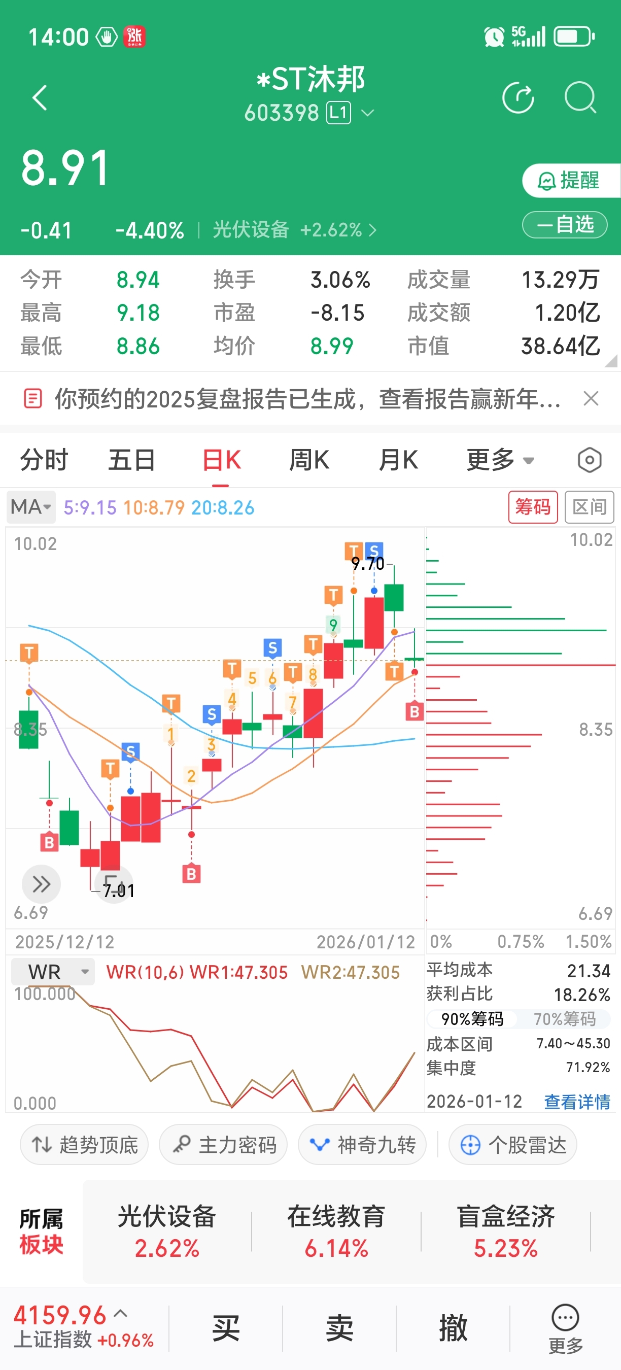$*ST沐邦(SH603398)$ 9.6跑的每天低吸直到退市