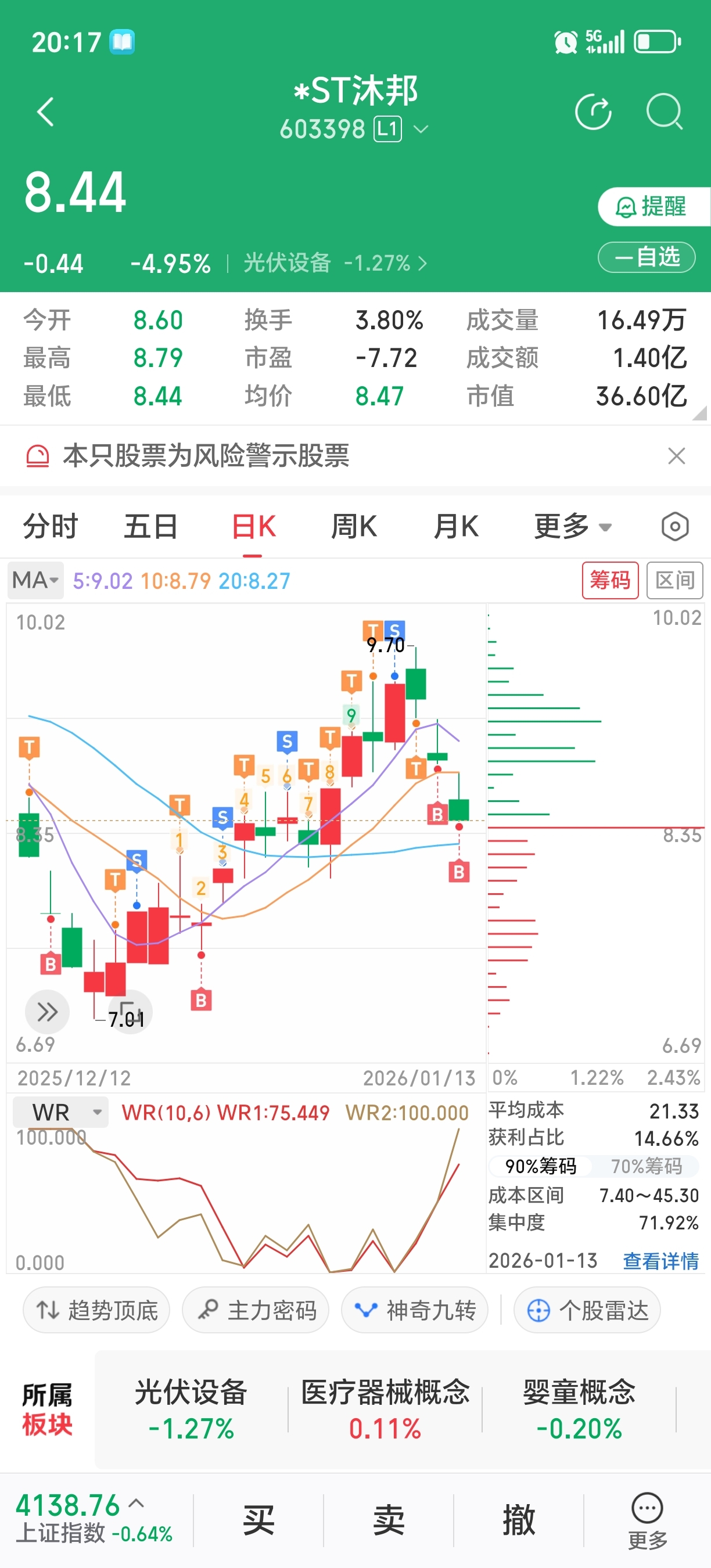 $*ST沐邦(SH603398)$ 9.6清仓的这周希望来5个跌停板,我要满仓过年
