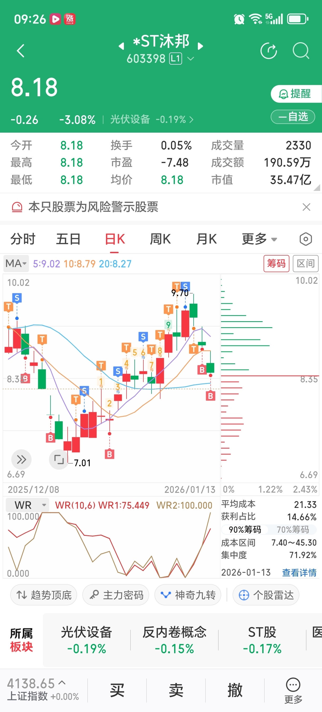 $*ST沐邦(SH603398)$ 请继续跌停保持别动,我每天都会买入