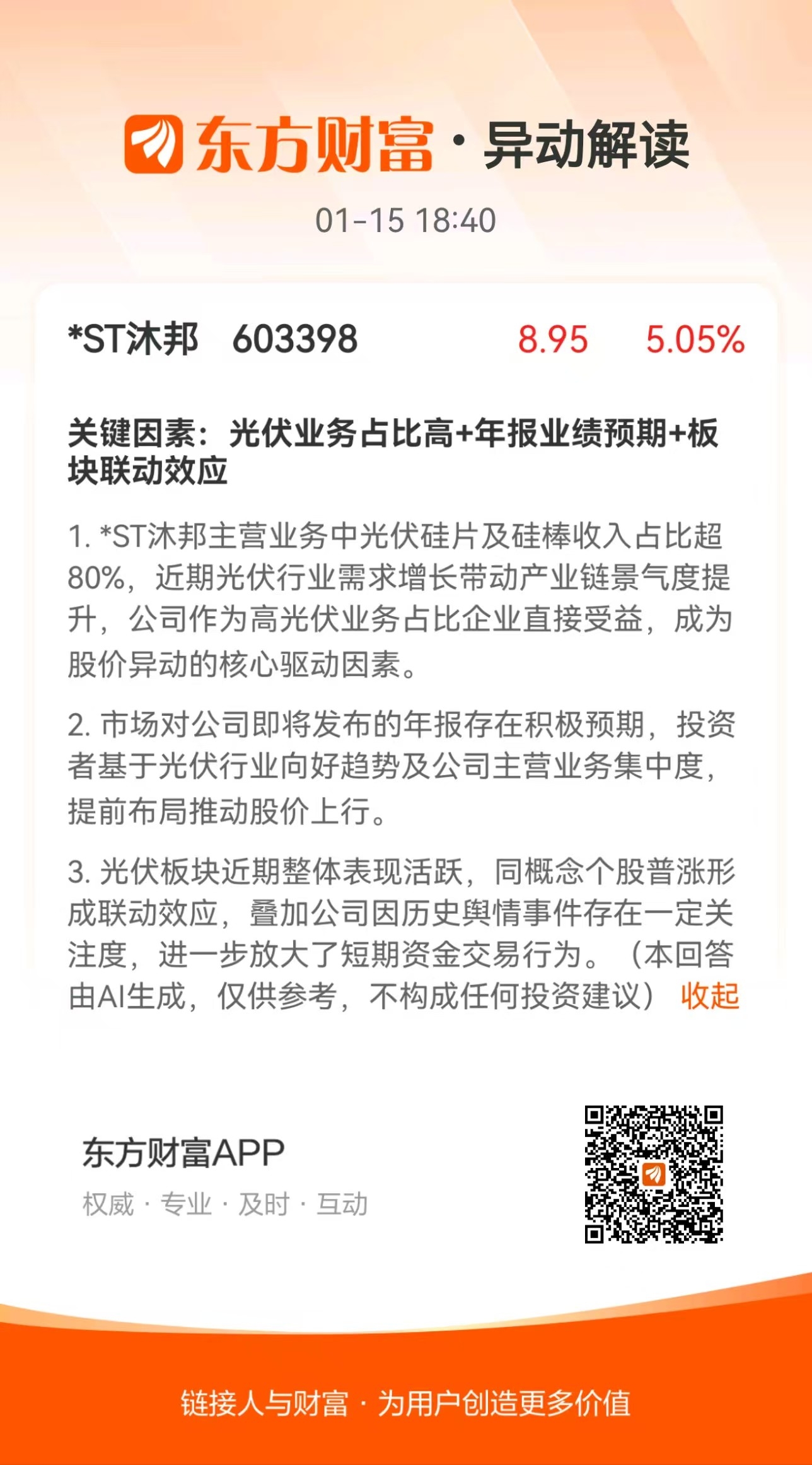 $*ST沐邦(SH603398)$ 那就是业绩有预期,明天强势点不要让散户进来。