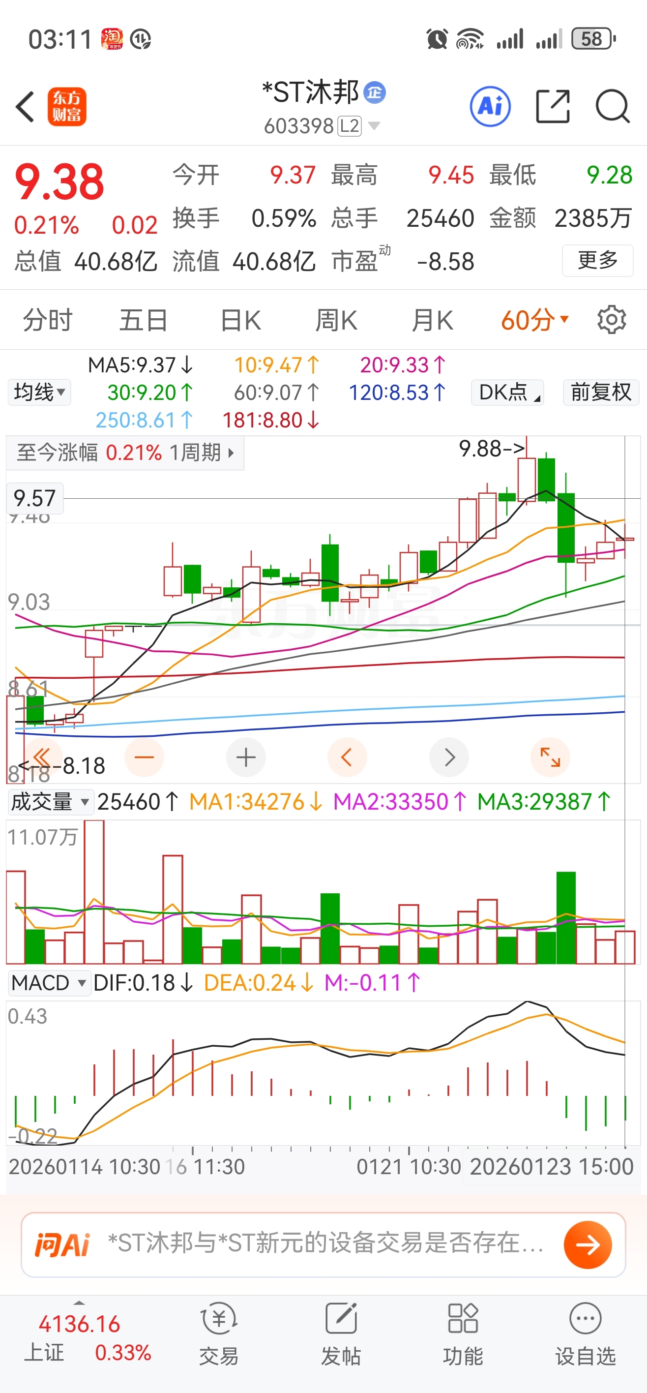 $*ST沐邦(SH603398)$ 昨天就担心今天不阳,还是熟悉的主力手法~~