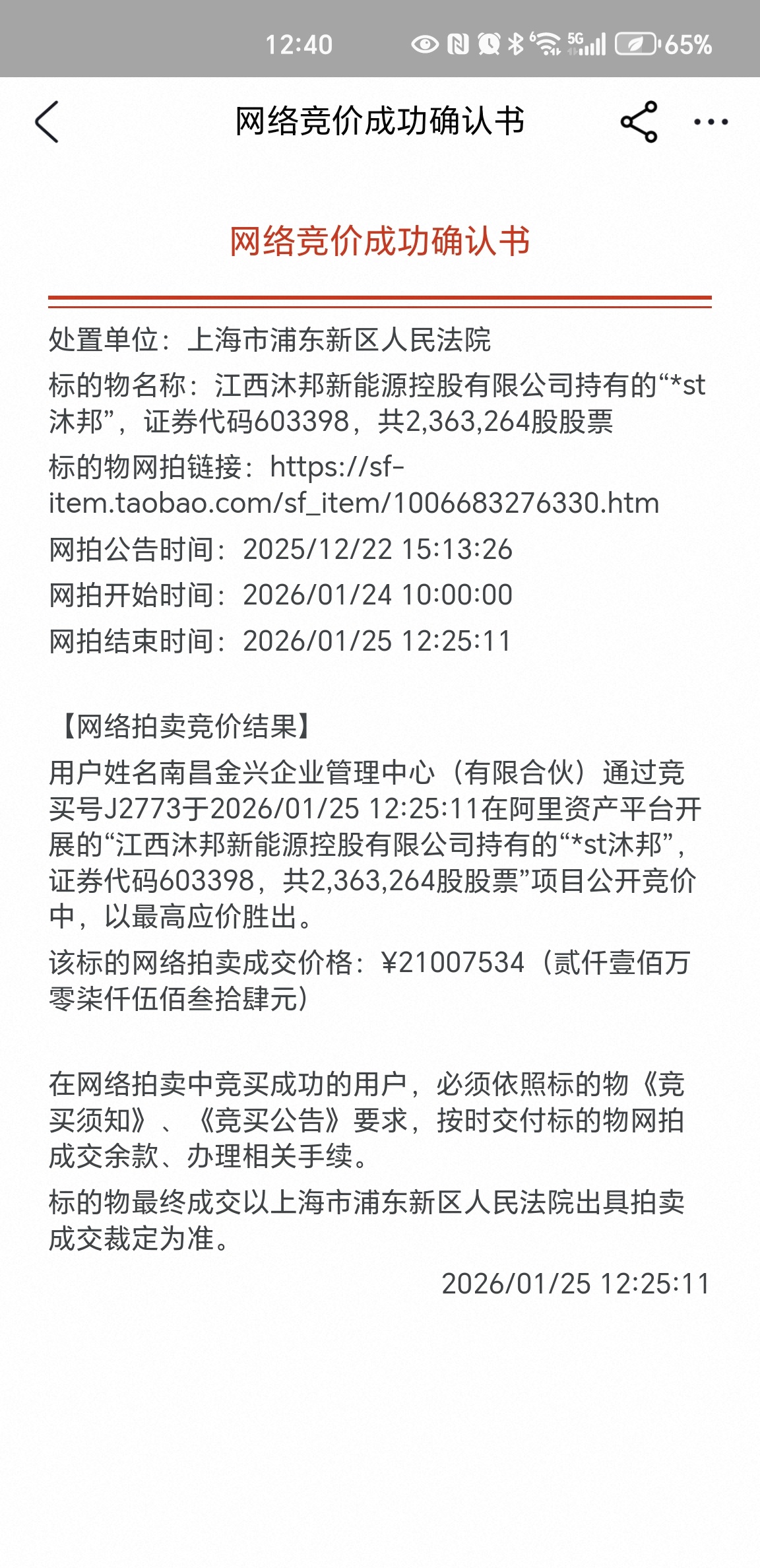 $*ST沐邦(SH603398)$ 南昌国资拿下