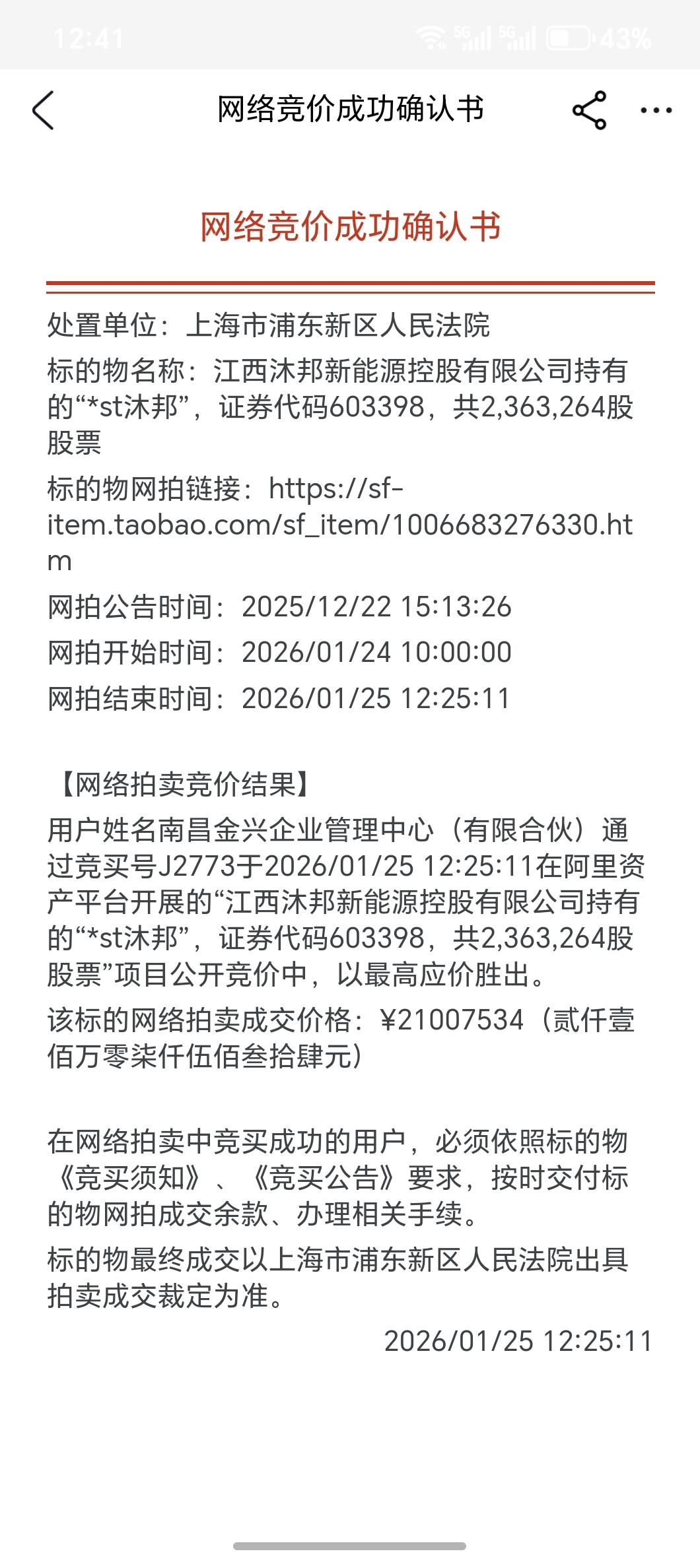 $*ST沐邦(SH603398)$ 江西国资竞得沐子,成交8.89元,果子竞得意义重大。$*ST正平(SH603843)$ $ST赛为(SZ300044)$
