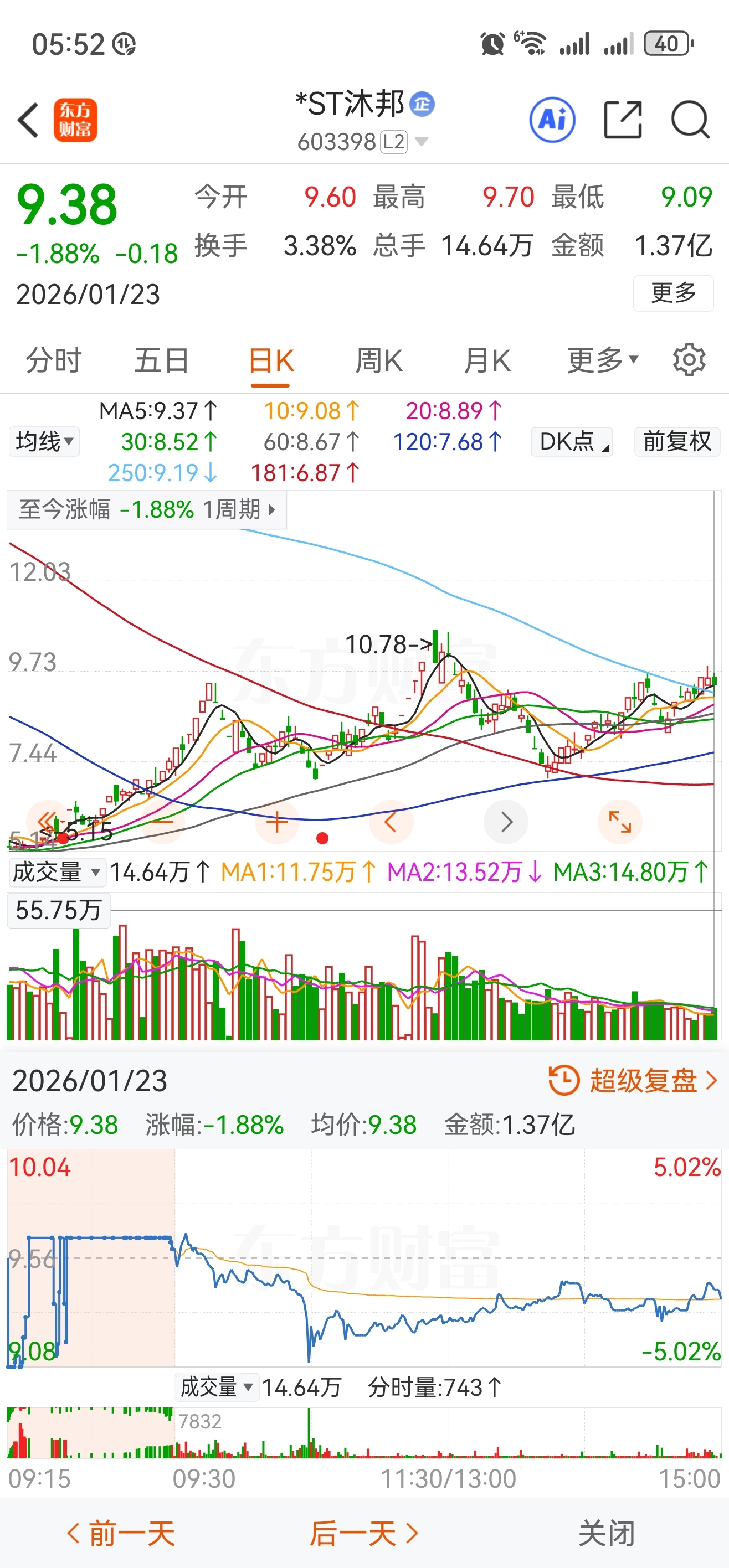 $*ST沐邦(SH603398)$ 分享一下周五收盘的判断依据之一,就是当时对比了新华锦关键日的分时走势,比较像。放个“马后炮”