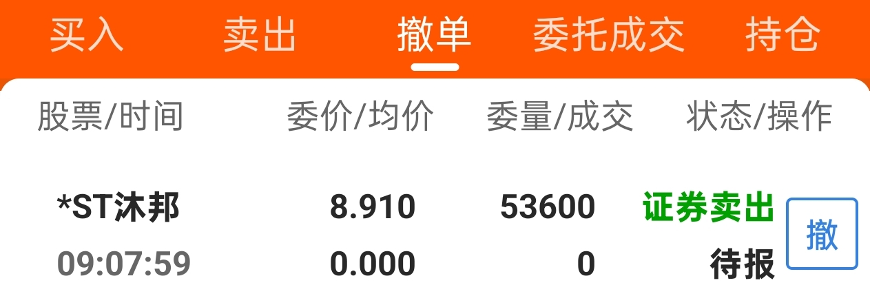 $*ST沐邦(SH603398)$ 已挂跌停卖