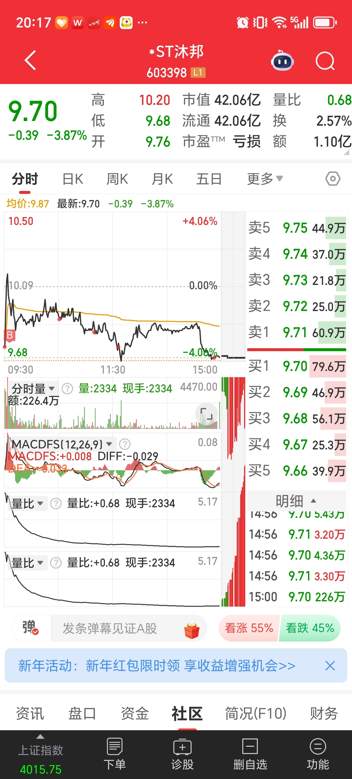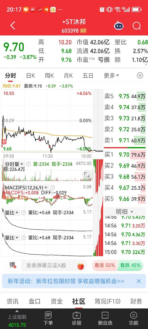 $*ST沐邦(SH603398)$  还是安心待在木棒里踏实,外面狂风暴雨,木棒9元绝对的大底。而且沐邦走势都是跌一天涨几天。