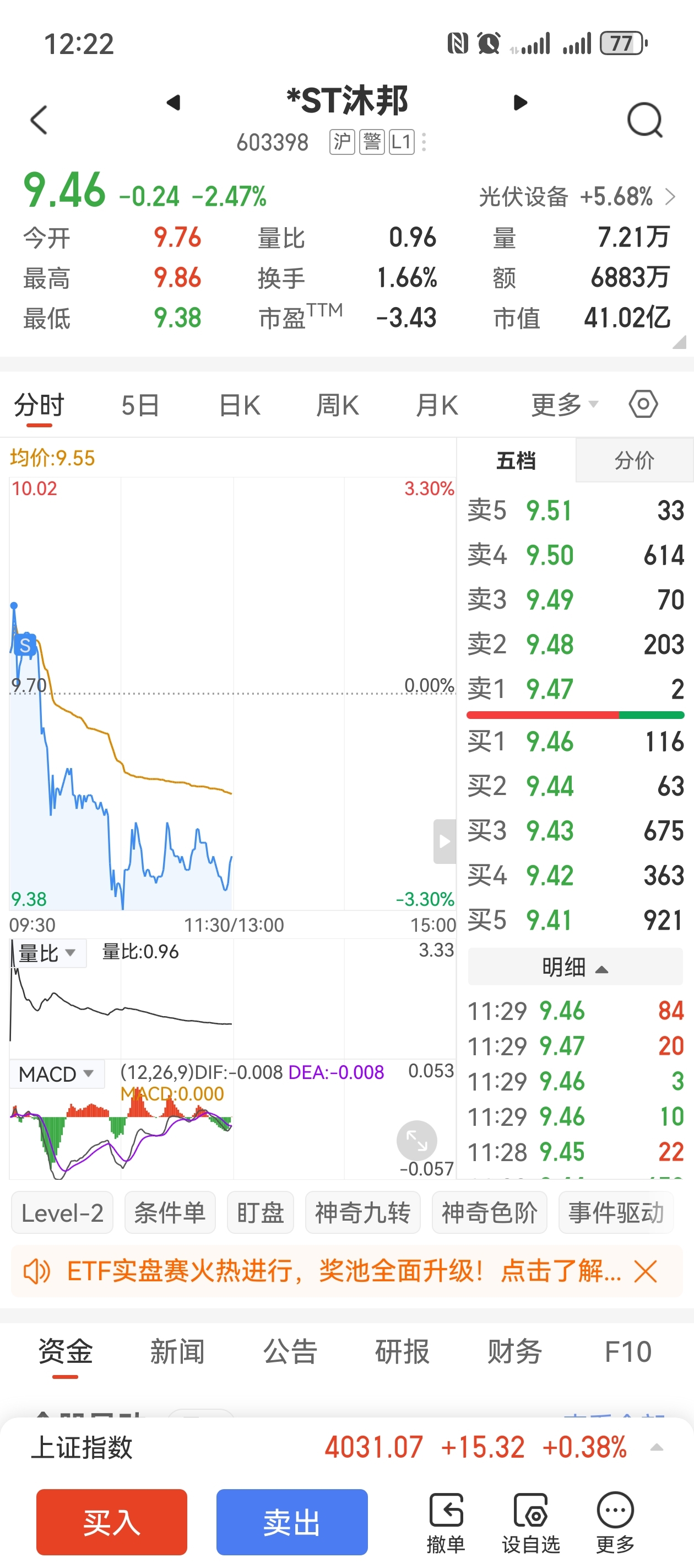 $*ST沐邦(SH603398)$ 你可以涨了,我出来了