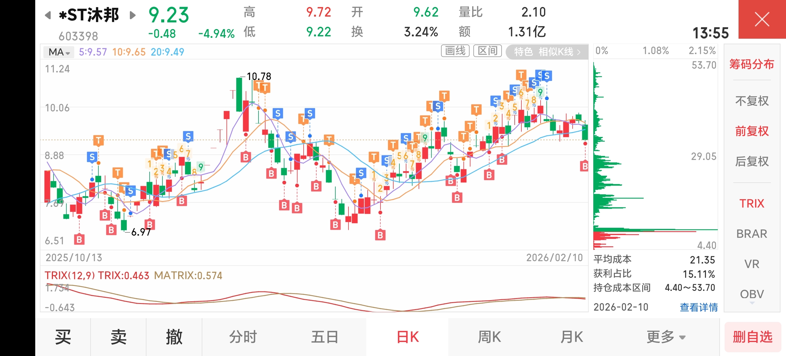 $*ST沐邦(SH603398)$ 我咋感觉是我在操盘