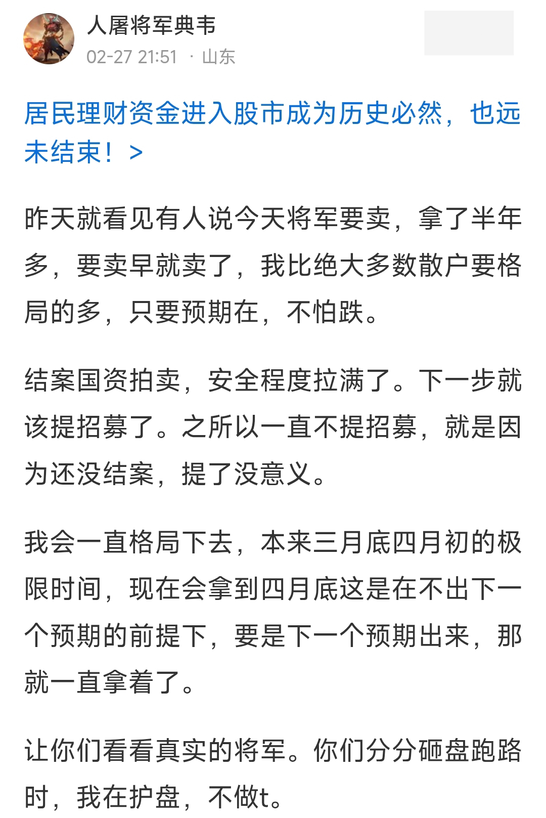 郑重声明:用户在财富号/股吧/博客等社区发表的所有信息(包括但不限于文字、视频、音频、数据及图表)仅代表个人观点,与本网站立场无关,不对您构成任何投资建议,据此操作风险自担。请勿相信代客理财、免费荐股和炒股培训等宣传内容,远离非法证券活动。请勿添加发言用户的手机号码、公众号、微博、微信及QQ等信息,谨防上当受骗!