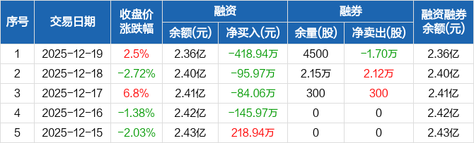 永杉锂业:连续4日融资净偿还累计744.95万元(12-19)