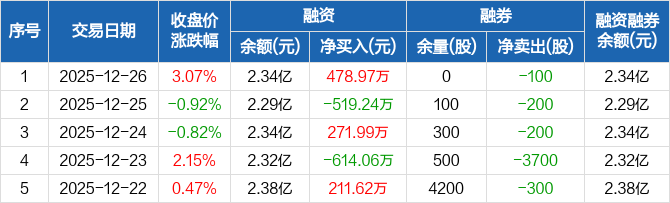 永杉锂业:融资净买入478.97万元,融资余额2.34亿元(12-26)