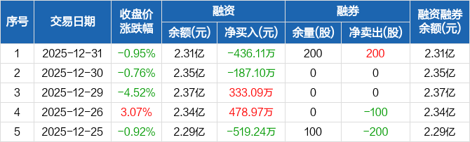 永杉锂业:融资净偿还436.11万元,融资余额2.31亿元(12-31)