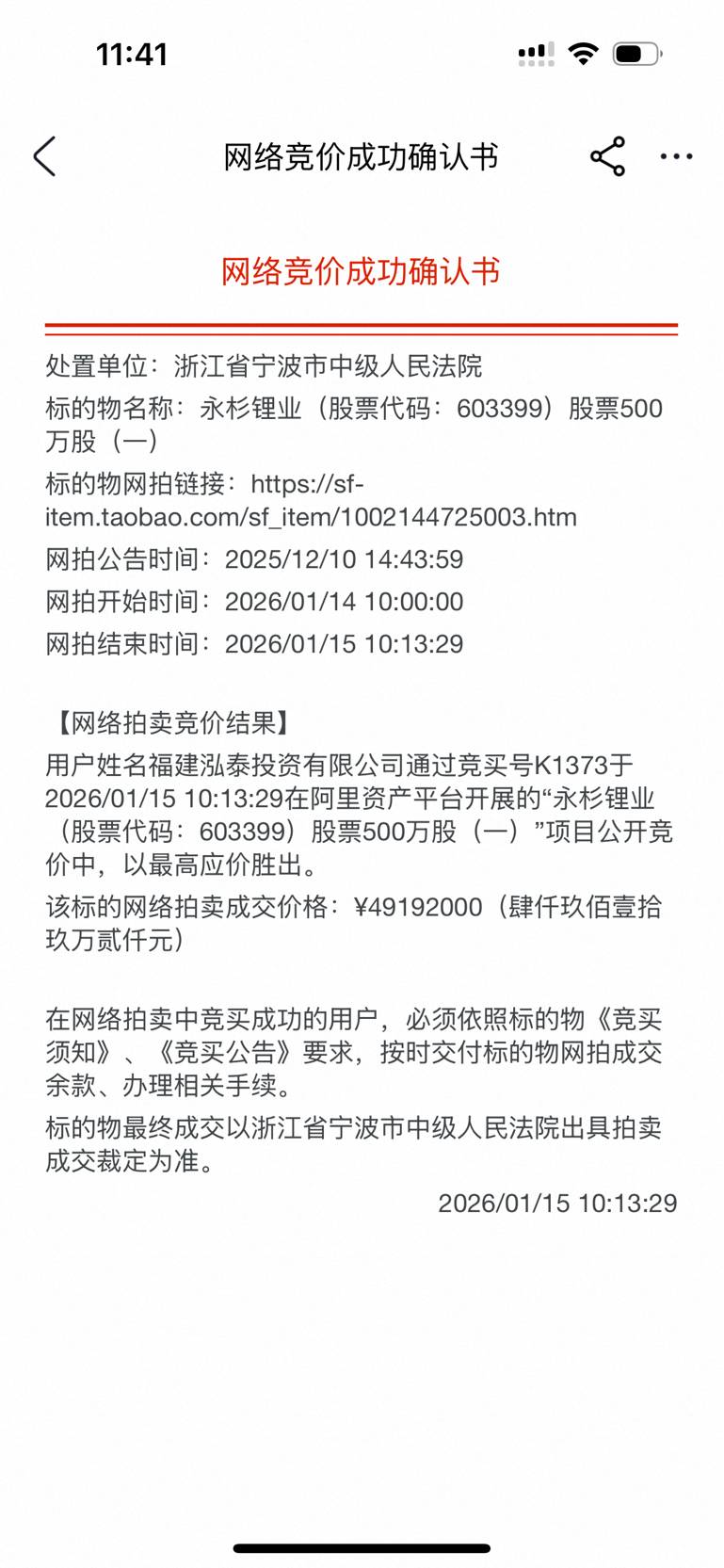 $永杉锂业(SH603399)$ 成交价为9.8384元/股,还要锁6个月,资金成本及各种费用不低啊。买家为福建投资公司,有意思。珍惜此股的底部时机吧~~