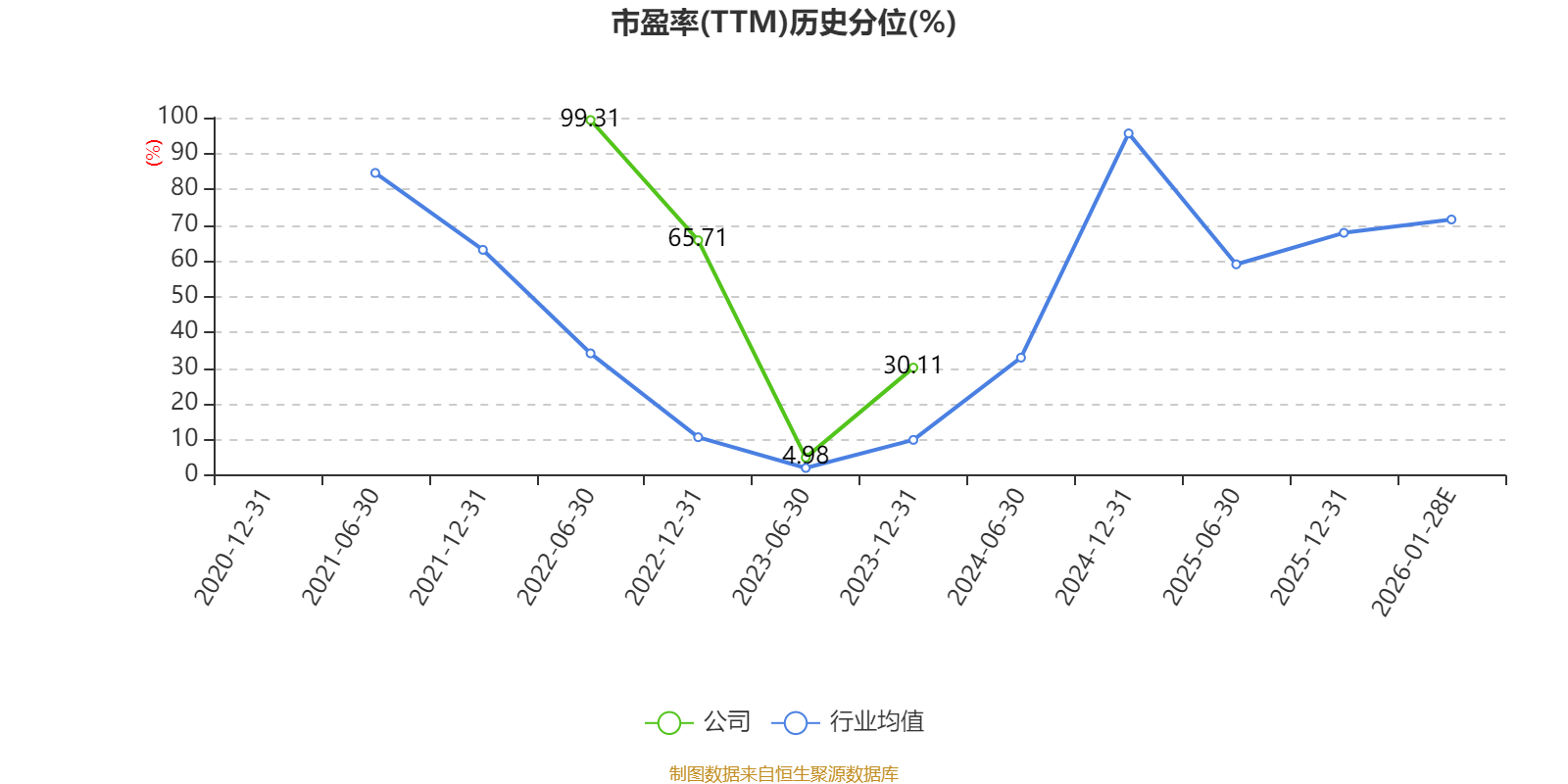 市盈率、市净率为负时,不显示当期分位数,会导致折线图中断。