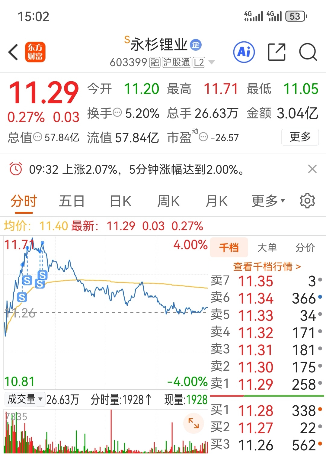 感谢永杉锂业,后会有期,还有机会的!继续持仓同样作为资源,等待钢铁行情新开两只油