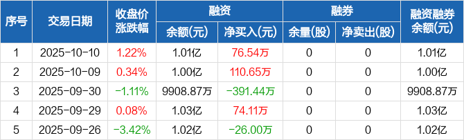 华之杰:融资净买入76.54万元,融资余额1.01亿元(10-10)
