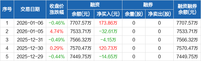 华之杰:融资净买入173.86万元,融资余额7707.57万元(01-06)