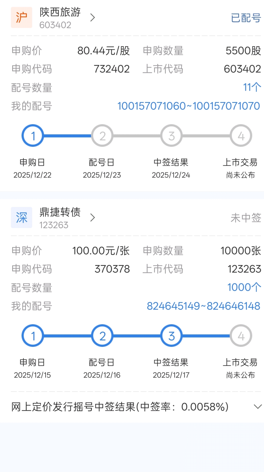 $陕西旅游(SH603402)$ 开户十多年了跪求第一次中签