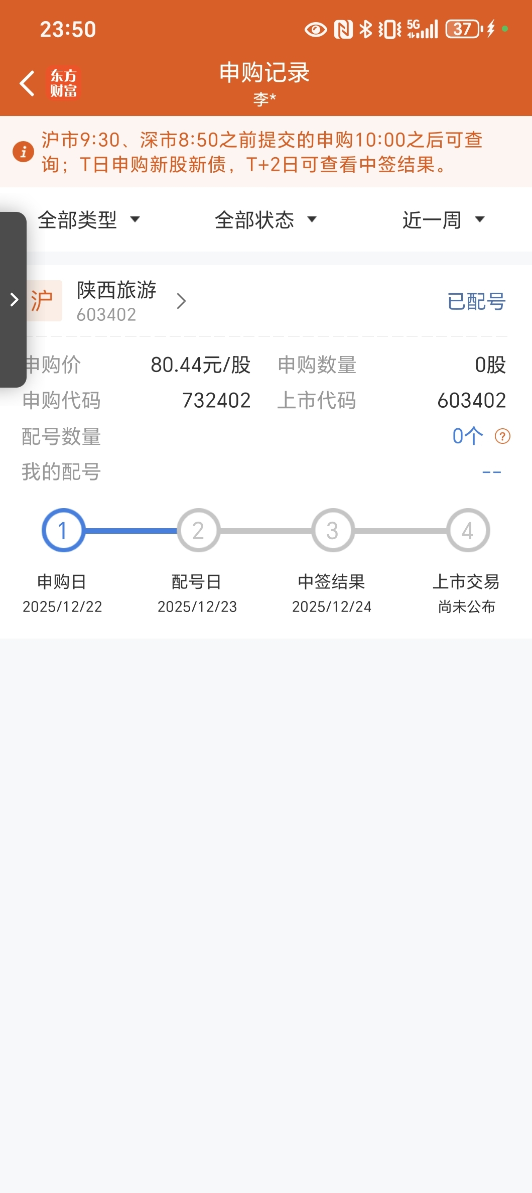 $陕西旅游(SH603402)$ 没有配号是没中吗